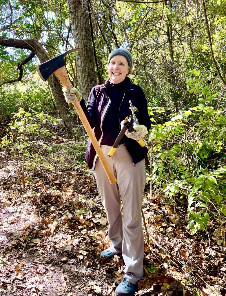 Watch out — Katherine has an axe! From her youthful days as a volunteer on the Continental Divide Trail.