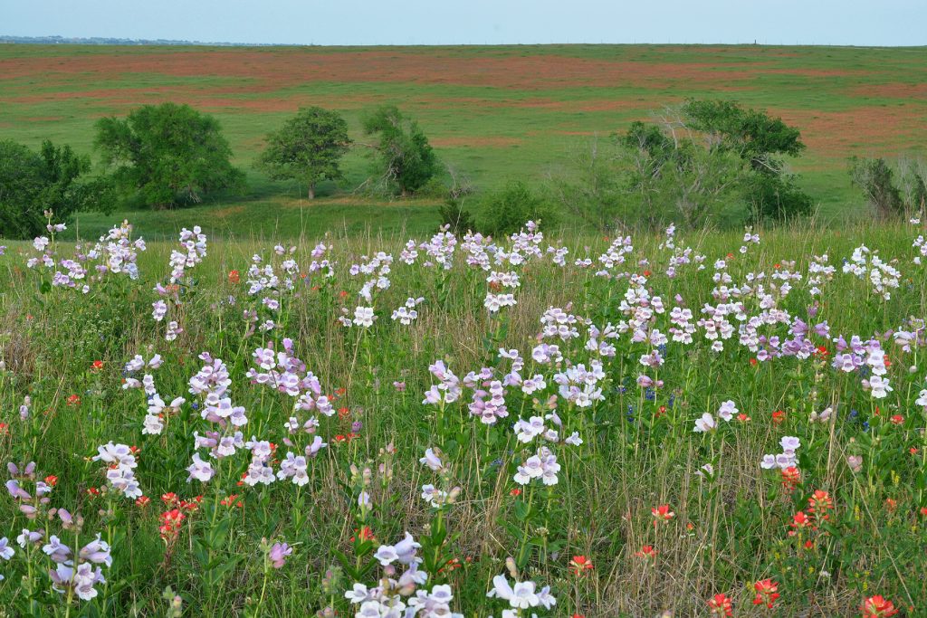Sideoats grama was added, along with some Canada wildrye, plus the wildflowers black-eyed Susan (yellow, spring to fall), diamond flower (tiny white spring to fall, Beatrice, liatris (summer, purple), and mondara (lavender, early summer).