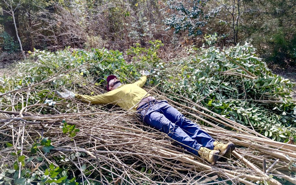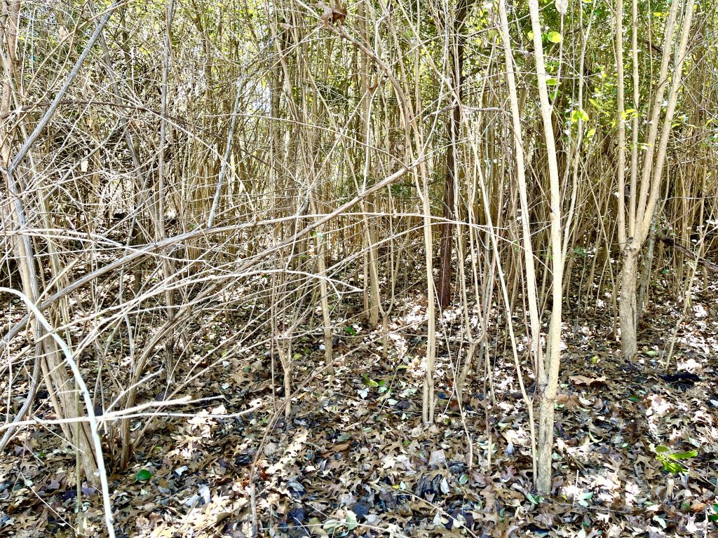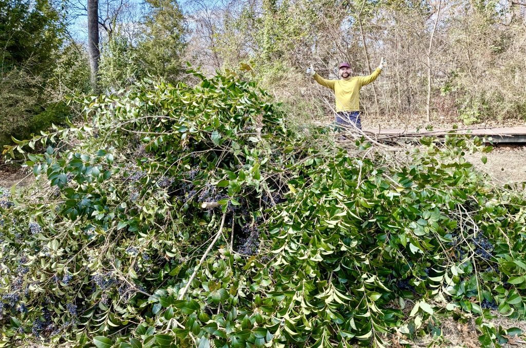We found lots of small yaupon, a berry shrub that birds like. They’re small but now have a chance to flourish: