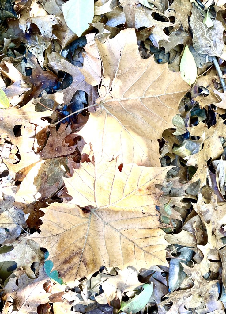 Somewhere lost in the privet is a poplar tree. We found the leaves but not the tree.