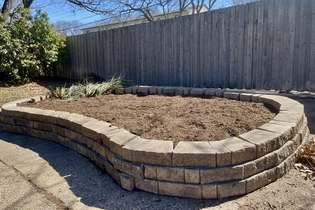 A number of red yuccas were all that remained alive in the bed, so a few weeks ago we pulled them up and stashed them in a temporary spot in the bed.