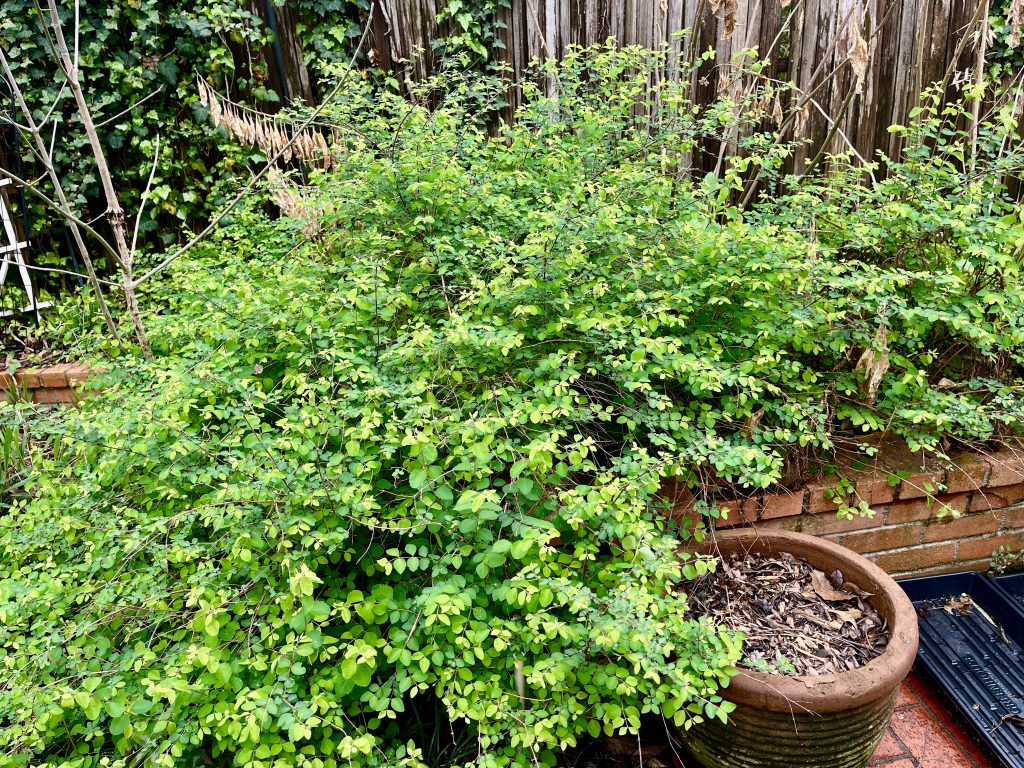 And here’s what the coralberry we’ve saved from privet could look like. Lots of armadillos and rabbits can hide under all that greenery. Also from my yard.